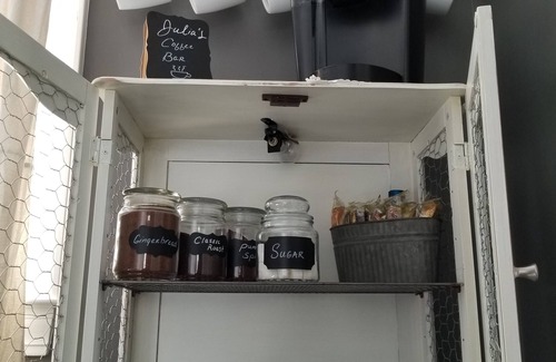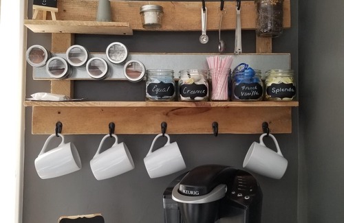 Once you make it to your room, you'll find a cozy queen sized bed with fresh sheets and a clean, SHARED, "Jack and Jill" bathroom with any toiletry you might need at hand. Flat screen tv with subscriptions to Netflix, hulu and amazon prime is also in your room along with wi-fi. Tucked in the corner you'll find a coffee bar with an updated selection of a few brews you may enjoy, a Keurig and all the usual coffee fixings. Also, in your room, is a mini fridge available for your convenience.