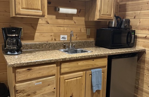 The cabin kitchenettes have a refrigerator, microwave, toaster, electric skillet, hot plate, crock pot, coffee maker and electric tea kettle.
