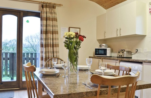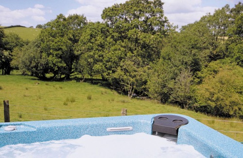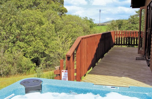 Woodside Lodge welcomes you with its working farm location, private hot tub and stunning views of this wonderful area of Wales.. 3 steps to entrance.