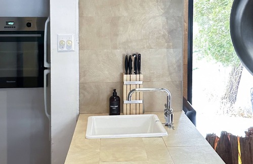 There are three houses next to each other, the Carriage House, the owner occupied Manor House and the Pond House, facing away from each other ensuring privacy. No other house is visible from inside the Carriage House with its own designated back yard facing the stream and waterfall. The 800 sft Carriage House, featured as a Freshgrub unique property, is ideal for a family of 4. The master bedroom with a king size bed is adjacent to the bathroom and the kids room with a low full size bed that extends to a queen size. Travel crib, toys, books, high chair, baby tub are provided.