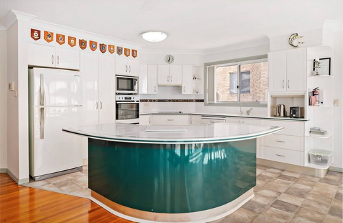 There is an open plan living/ dining area with a split system air conditioner, ceiling fan, Smart TV and DVD. The living area opens out onto the balcony with a gas Weber BBQ and dining facilities. Fantastic fully equipped kitchen with complete cooking facilities including electric cooktop and wall oven, microwave, family size fridge / freezer and dishwasher.