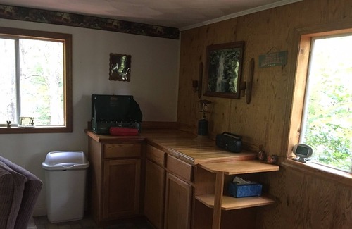 Stay in treehouse in secluded 130 acres. Peaceful get away! Lots of wildlife to see. Very private! Great place to explore nature! This place is just like camping! There is no running water,no inside bathroom and no electricity!Which means there is no bathroom! There is an outside toilet! We supply you with water from our spring! We have coleman lanterns and battery operated lights! Just like camping! There is a outside fire pit that you can cook on! We also supply firewood! A wonderful place to relax! This Is linked with airbnb lots of reviews there.25 A night per person after 2 people. There are two twin beds. After two people you should bring a air mattresses. We rent generator for 25$for 8 to 10 hours or tank of gas. Pots pans supplied! All you need to bring is your food,ice and a cooler!