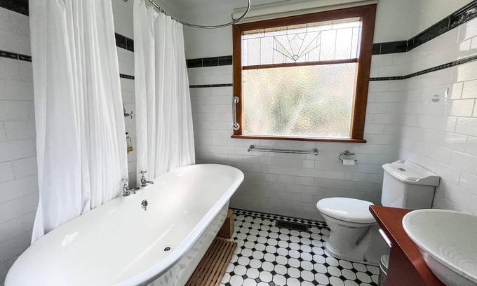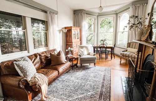 Built in the 1920s and lovingly restored, this elegant two-bedroom cottage blends Art Deco charm with modern luxury. Enjoy leadlight windows, fine furniture, walk-in robes, two ensuites, and an indoor Jacuzzi under a skylight. Relax by the fireplace, cook with Smeg appliances, and dine under a bay window or on the deck with mountain views. Ideal for couples or boutique wedding prep. Includes entry to Cloudehill Gardens for the perfect Dandenongs escape.