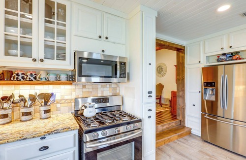 Treat your family to a countryside getaway at this 3-bedroom, 3-bath vacation rental on Copperas Creek Ranch in Sidney. Start the day with breakfast on the home’s deck and admire the pasture views — you may even be greeted by one of the Texas Longhorns! Need a break from the heat? Lake Brownwood State Park is 27 miles away. In the evening, cozy up by the fire for late-night s’mores under the stars.