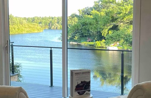 "Escape to luxury at Reflections, your waterfront haven in Massena. Unwind in style with our massage chair, indulge in cinematic bliss on our home theater, or take in breathtaking river views from our gigantic deck, perfect for sunset viewing and al fresco dining.