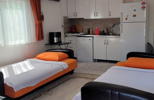 It is 35 km to Fethiye, the most famous holiday resort of our country, 25 km to Patara (Karadere) Beach, 9 km to Saklıkent Canyon, 4 km to Tloos Atik City and King Tombs Museum, 9 km to Yakapark and Secretkent Waterfalls. away, in a 1+1+1 prefabricated concept, suitable for the accommodation of up to 4 people, in its own 250 m2 garden decorated with olives, pomegranates, citrus fruits, all kinds of flowers and greenery, where you can have a holiday in complete peace and nature accompanied by the chirping of birds, our detached house, which is entirely yours, is presented to you, our holiday makers. The 1-day accommodation fee will be requested as a deposit and will be fully refunded if there is no problem at the exit. It is a suitable environment for our guests' pets. We have all the kitchen utensils and tools necessary for a house in our house, and you can harvest and consume your own vegetables in our facility, which can meet all your needs with internet, smart TV, air conditioning in each room and 24 hours hot water, and you can help with garden irrigation and maintenance works if you wish. You can call 24/7 to get price and availability information.