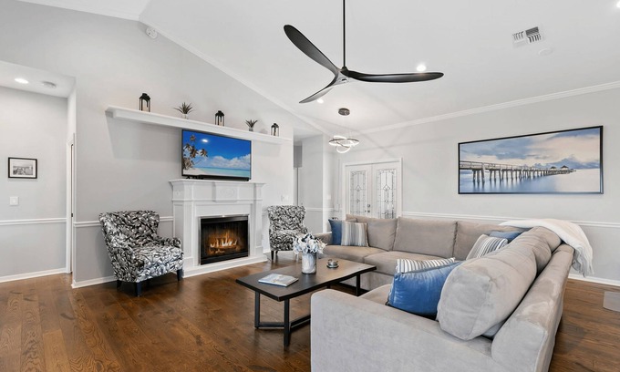 Each bedroom features ample bedside plugs, USB ports, full length mirrors, large nine drawer dressers, 43" smart LED Televisions- cable & internet connected, beautiful lamps and side tables, fabric headboards, Sealy Perfect Sleeper Mattresses, Luxurious Egyptian cotton sheets, down alternative bed spreads, additional super soft blankets, firm and soft down alternative hypoallergenic pillows, pocket doors & ceiling fans.