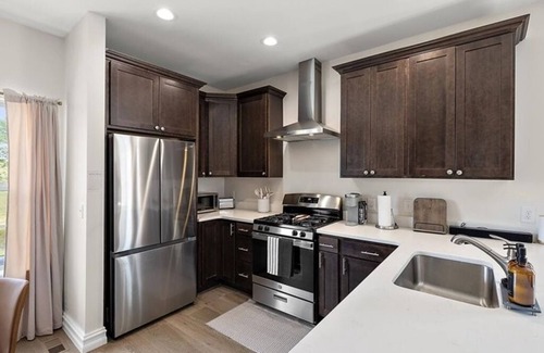 Your cozy getaway awaits in Ann Arbor at this amazing townhome! With 2 bedrooms featuring a queen and king bed, 3 bathrooms equipped with a bathtub, shower, and bidet, this property offers a peaceful retreat for guests. Enjoy the convenience of amenities like AC, WiFi, fireplace, games, bidet and a washing machine during your stay. Just a short stroll you'll find popular stores like Starbucks, Kohl's, Meijer, and Best Buy. The Briarwood Mall is only a 3-minute drive from our property. If you're visiting the University of Michigan, you're in luck! Our location puts you just a 9-minute drive away from campus. And for all the sports enthusiasts, our property is perfectly situated for home games, making it a prime spot to celebrate and cheer on your favorite team. We'll be available to answer any questions while you stay at our place.