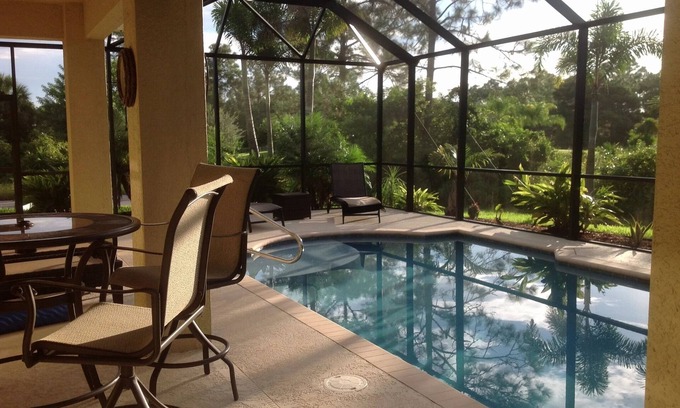 - Ft Myers-Lehigh Acres/Saltwater Electric Heated Pool + 3 Waterfalls/Hot Tub