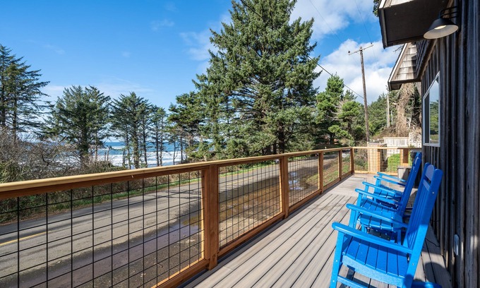 Wrap around sunset deck & hot tub! Steps from surf & tidepools too. | House in Otter Rock