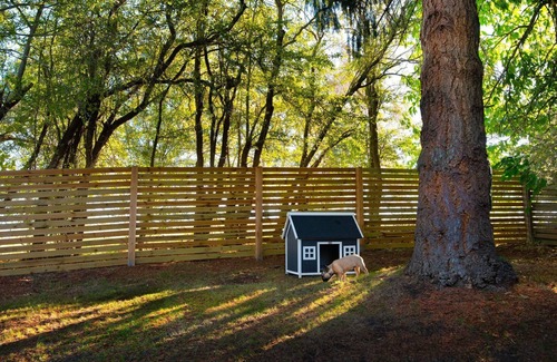 Outside, soak your worries away in the spacious 6-person outdoor spa while enjoying a glass of wine, surrounded by birdlife and treetop views. The secure, pet-friendly yard means your furry friend can enjoy the getaway too.