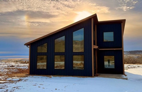Amazing views in every direction, this Wyoming cabin sits on the 300 acre Ever Sky Ranch at the base of the Bighorn Mountains. Peaceful and serene ~ enjoy the sunrise over the mountains and sunset into the valley, watch cattle and horses graze as well as plenty wildlife, experience incredible birdwatching and spectacular starry night skies. Inside the cabin ~ enjoy comfy bedding, modern western decor, a well stocked kitchen, 2 luxurious bathrooms, and a welcome book with all our local favorites!
