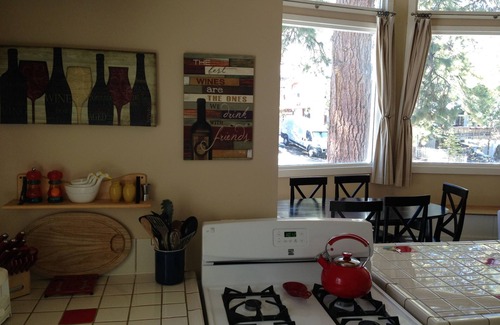 This gorgeous chalet is located on a large corner lot with a fenced yard, wide streets for quick access to highway 2 and Mt. High and a long, level driveway for easy parking. It features huge picture windows and attached elevated deck with BBQ and bar for beautiful views as well as everything else you need for a great stay.