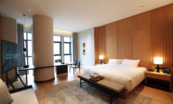 Wudang Moutain The Yew House offers 35 air-conditioned accommodations, which are accessible via exterior corridors and feature free minibar items and espresso makers. These individually decorated and furnished accommodations have separate dining areas. Beds feature down comforters. 85-inch LCD televisions come with cable channels and smart speakers. Rooms have detached private bathrooms. Bathrooms include separate bathtubs and showers, bathrobes, slippers, and designer toiletries.