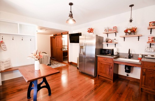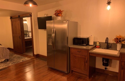 This unit is a ADA unit. The charming building has a rich history with origins dating back to as early as the mid-1800s. The original structure burnt down and was rebuilt in 1918, but it is believed that parts of the early foundation still remain. It has operated as numerous businesses and has seen a handful of owners throughout its life. This newly-restored one bedroom suite on main floor features one original window, hardwood floors, locally made Amish furniture and beautiful views of historic Berlin.