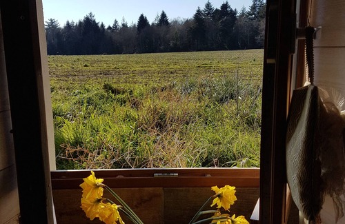 At the edge of a field on the back (West) you will have all the sunsets on a large part with garden furniture and BBQ.