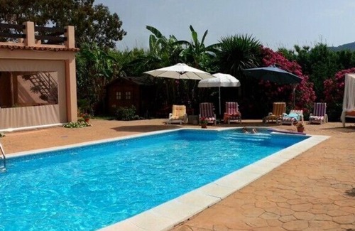 Facilities: The house has: 47" Smart Tv, Dvd + Hi-Fi Equipment, pool 12x6m, the pool shower is between banana trees. 3 double bedrooms with double beds, one of them has a fireplace. 45sqm living room with fireplace and air conditioning. Solarium of 50m² with incredible views above all the fincas. Considerable orchard and fruit trees in full production. Parking for 4 cars inside the house. Barbecue. Paellera.