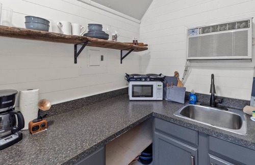 Caddo Lake Cabins are 4 "Tiny House" Cabins with a view of the mysterious Caddo Lake! There is a charcoal grill / smoker next each cabin & also next to the covered picnic pavilion, with hanging lights for nighttime enjoyment! However, the STAR of the show is sitting outside at night watching thousands of stars twinkle & fly through the sky! It's a one of a kind experience! Enjoy Caddo Lake all day, then the star show at night!