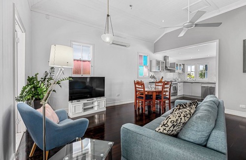Nestled within a few minutes of the beach, this property offers beach vibes with a charming twist. Inside, it's all about that open-plan living flooded with natural light. You've got a fully functional kitchen, a chill-out zone with comfy furniture, and a dining space fit for four. Outside, you'll find a shared covered patio area with al fresco dining and BBQ setup, perfect for socialising. The bedrooms are cosy and meticulously decorated to provide guests with a relaxed atmosphere, and the bathroom offers relaxation with a walk-in rain shower. With added perks of timber floors, A/C, fans, and laundry facilities, as well as nearby beaches, parks, and public transport, this abode won't disappoint you.
