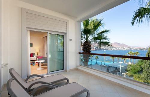 Facing the beachfront, Xanadu Island offers 5-star accommodations in Akyarlar and features a garden, private beach area and shared lounge. Among the various facilities are a terrace, a bar, as well as a tennis court. The hotel has an outdoor swimming pool, indoor pool, karaoke and a kids' club. The hotel will provide guests with air-conditioned rooms with a desk, a coffee machine, a minibar, a safety deposit box, a flat-screen TV, a balcony and a private bathroom with a shower. Rooms contain an electric tea pot, while certain rooms come with a kitchen with a fridge, a dishwasher and a stovetop. The rooms have a closet. Guests at Xanadu Island can enjoy a buffet breakfast. At the accommodation you'll find a restaurant serving Italian, Mexican and Turkish cuisine. Vegetarian, vegan and gluten-free options can also be requested. At Xanadu Island guests are welcome to use a hot tub. You can play pool, table tennis and darts at the hotel, and the area is popular for snorkeling. Speaking German, English, Russian and Turkish at the reception, staff will be happy to provide guests with practical advice on the area. Akyarlar Beach is a few steps from Xanadu Island, while Bodrum Castle is 17 miles from the property. Milas-Bodrum Airport is 41 miles away.