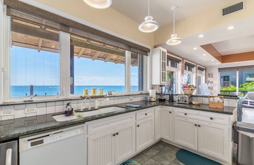 Perched high atop an oceanfront sand dune, the home is so close to the ocean that a child can toss a tennis ball into the water, from Xanadu's large oceanfront deck. And with 12+ bedrooms, 6 bathrooms (including 4 en-suite bathrooms), this enormous 4-story retreat is packed with features to delight everyone in your family or group, across all ages. Xanadu includes a double-oven oceanfront chef's kitchen, top-floor observation deck with water views for miles, & more. (And did we mention the oceanfront plunge pool / hot tub, plus heated swimming pool on the riverside?)