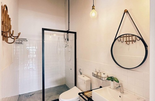 While you're here, you can enjoy all the comforts of home and more, including a rainfall showerhead and a refrigerator, as well as free WiFi and an LCD TV. Other amenities include designer toiletries, hypo-allergenic bedding, towels, and slippers.