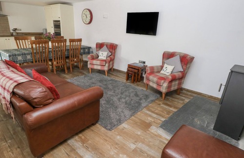 Amenities: Oil central heating with woodburning stove. Electric oven and hob, microwave, fridge/freezer, dishwasher, TV and WiFi. • Shared laundry room with additional fridge, freezer, washing machine and tumble dryer. Fuel and power inc. in rent. Bed linen and towels inc. in rent. Off-road parking available. Private courtyard with hot tub and outdoor seating area. Sorry, no pets and no smoking. Shop 0.7 miles; pub 4.4 miles. Pampering packages available on request with the owner. Please note as the hot tub is emptied and refilled between each guest the owner cannot guarantee that the temperature will be up to the recommended 37 degrees