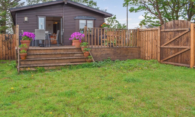Shower Room: Cubicle Shower, Toilet. Electric central heating, gas, electricity, bed linen, towels and fibre broadband included. . Enclosed rear garden with sitting-out area, garden furniture and BBQ. Hot tub (private). 3 dogs welcome. Bike store. Private parking for 3 cars. No smoking. Please note: There are 3 steps in garden. The property is accessed by rough track.. The lodge has the rare benefit of a large enclosed garden, along with decking and seating area to relax on after a day at the beach, which is walking distance away. Once inside you’re greeted by a very spacious open plan living space, there’s a quality leather corner sofa with oodles of space for all the family to relax and chat about the day. The two bedrooms have been furnished to a high standard to ensure you have a restful nights sleep, with quality mattresses and bedding, and one has its own en-suite toilet with sink.