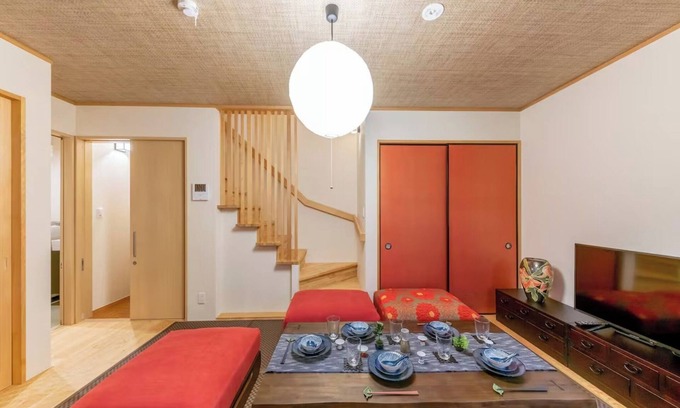 On the second floor there is a Westernstyle room with two single beds and a Japanesestyle room with three futon sets so it is also possible for two families or friends to stay