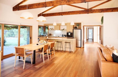 Yarradene Luxury Healesville Farmstay is a recently renovated vacation home in Healesville where guests can make the most of the garden and terrace. This property offers access to a patio, a pool table, free private parking, and free Wifi. On clear days, guests can head outside to enjoy the vacation home's outdoor fireplace or simply kick back and relax. Offering a balcony and mountain views, the spacious vacation home includes 4 bedrooms, 3 living rooms, flat-screen TV, an equipped kitchen, and 3 bathrooms with a shower. A private entrance leads guests into the vacation home, where they can enjoy some wine or champagne and chocolates or cookies. There's also a seating area and a fireplace. There is an on-site bar, and during warmer months you can make use of the barbecue facilities. Guests at the vacation home will be able to enjoy activities in and around Healesville, like cycling and hiking. An indoor play area is also available for guests at Yarradene Luxury Healesville Farmstay. The Heritage Golf & Country Club is 20 miles from the accommodation, while Dandenong Ranges Botanic Garden is 26 miles from the property. Essendon Fields Airport is 45 miles away.