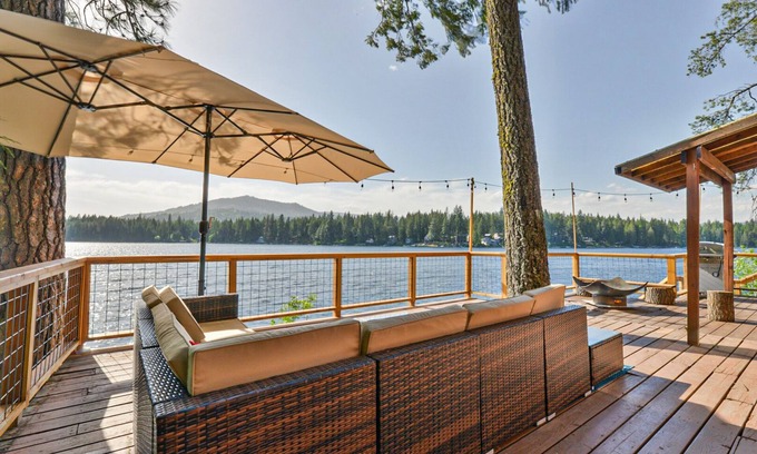 This lake house is right on the water and has panoramic views of the lake from almost every room with beautiful views from the kitchen. You will have the best view of the sunset right on the water. We have blazing fast fiber optic WIFI. This lake house is a amazing getaway right on the water, Just 40 minutes from Spokane. Located only 25 minutes from 49 North Ski Hill and 35 from Mt Spokane and 50 minutes to Schweitzer. YOU HAVE TO COME SEE THE SUNSETS!!!!