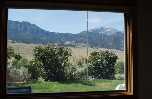 "Where The Buffalo Rooms" a studio apartment situated up on a bluff above the town of Gardiner, Montana with amazing views of the historic Yellowstone Arch, Electric Peak and the North Entrance to Yellowstone National Park.