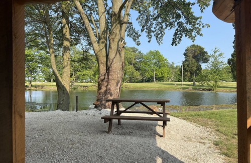 Fully loaded kitchen, patio views, wireless internet & a private view on a pond. Don't worry about parking as there is plenty of it for all of your travelling essentials. This charming cabin is larger than it seems with all of your outdoor living space to enjoy!