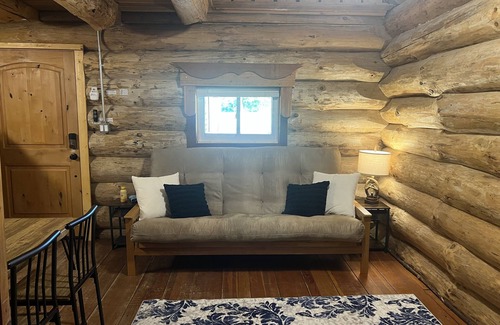 Get away from the city and enjoy some quiet time at this rustic genuine log cabin. Sit on the front porch and enjoy your private view of the pond or take a 2 minute walk over to Yellow Banks Lake and hang out on the beach and fish.