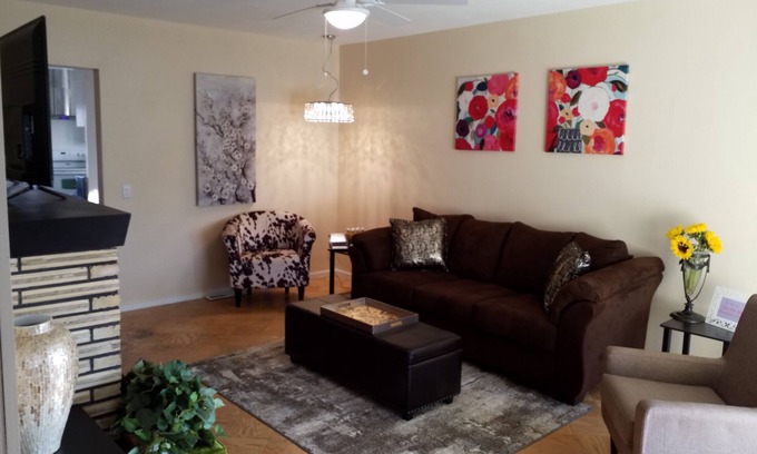 Guests are sure to enjoy a their stay in this fully furnished, 3 bedroom/1 bath house with air-conditioners. Comfortable for sleeping 6 people, the master bedroom has a new king-size bed and two new queen-size beds in the other bedrooms. The living room with tremendous window is a wonderful area to enjoy sunset. It's decorated with new furniture, new 50" Roku TV & Netflix. The kitchen is equipped with plenty of utensils, refrigerator, range oven, microwave, blender, Keurig coffee maker, waffle maker, and toaster. Additionally, a formal dining room was remodeled. The new bathroom. We have carport for parking. The lot is more than 7000 sf with pine, maple trees, and some berry plants in back yard. Less than an hour away from Glacier, guests can enjoy golfing, hunting, fishing, parks, restaurants, casinos, and much more. It's wonderful to stay a couple nights or a couple weeks in the comforts of home!