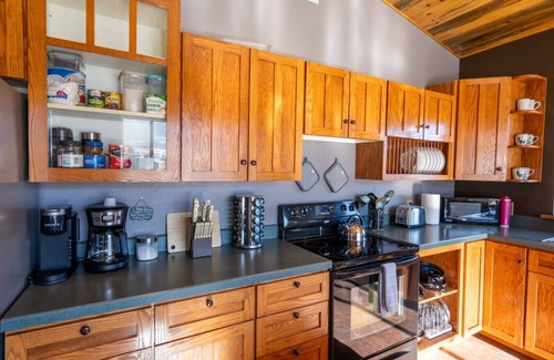 The cabin features two bathrooms, providing ample space and privacy for your group. Stay connected with the included Wi-Fi and take advantage of the in-unit washer and dryer to keep your clothes fresh during your stay. When you're ready to explore,