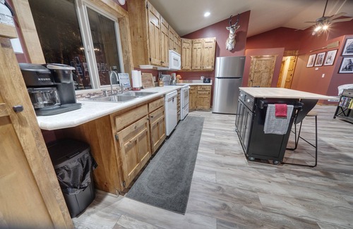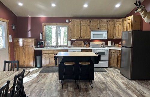 Nestled in Island Park, Idaho Trappers Keep is a 2016-built, newly remodeled 3-bed, 2-bath cabin just 30 minutes from Yellowstone's west entrance. With a spacious kitchen, family room, and large windows, it seamlessly blends modern comfort with rustic charm. Explore the expansive grounds, a gateway to nature's wonders. The Master Bedroom offers a King bed and a private bathroom, while two additional bedrooms provide cozy retreats—one with a queen bed and the other with two queens. Trappers Keep is your haven for tranquility and adventure.