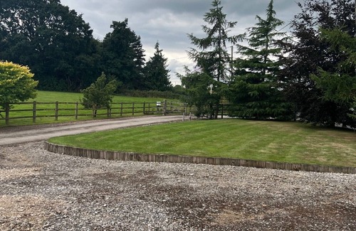 The bungalow is situated inbetween the Wheatsheaf Inn and Onneley Village Hall on the A525. You will see the flagpole and flag and wooden post and rail fencing and gate. There is plenty of room to pull into the drive safely to enter the code for the gate. Once through the gate, take the first drive on the left and you have arrived at Yew Tree Bungalow.