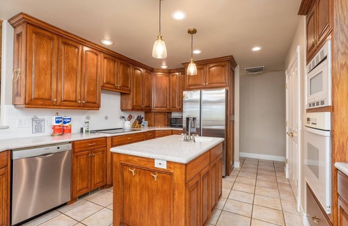 Kitchen- The kitchen is stocked with pots, pans, cookware, cups, silverware, and more! Our housekeeping team leaves out salt, pepper, and a can of cooking spray. Friends, family, and other guests sometimes leave spices, aluminum foil or ziploc bags at the home. You are most welcome to use any of these items, but if something is particularly crucial to the success of your meals, we do recommend bringing it along with you.
