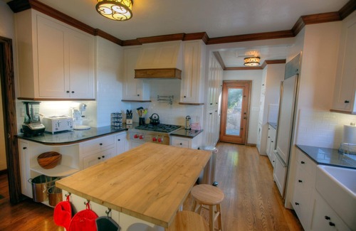 With kitchen renovation in 2009, the authenticity of the 1932 era was maintained while providing a very modern, custom kitchen. The kitchen features granite counter tops, stainless steel appliances, warming drawer, farm sink, prep sink, pot filler, gas Wolf stove top, and Sub-Zero refrigerator.
