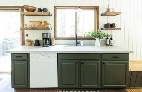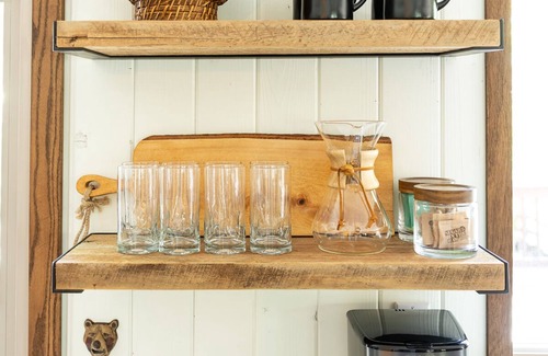 The cabin is well appointed with all the modern comforts needed for your stay, including a fully equipped kitchen, coffee station, Public Goods bath products, a record player, board games, books and a Wi-Fi/Netflix enabled TV.