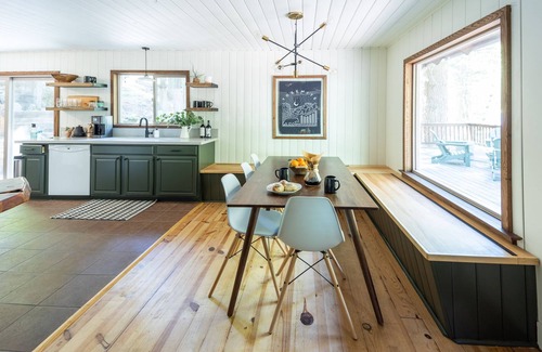 Mystic Pines Cabin is a beautiful and spacious two-story, 3 Bedroom, Historic Cabin, tastefully renovated with all the modern conveniences and stylish interior.