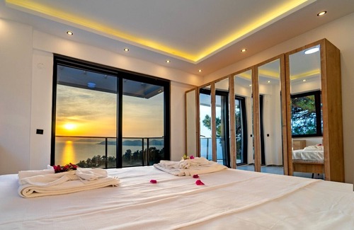 It is located in Faralya and has uninterrupted ocean views from every angle, including the infinity pool. Faralya is a village approximately 15 km from Ölüdeniz, home of the Blue Lagoon. This pristine village is known as the "village on the cliffs". Its peaceful and natural surroundings make it the perfect place to relax and rejuvenate. The villa itself has 4 floors with 6 bedrooms and 7 bathrooms. Each floor is the pinnacle of luxury, with a sauna and extraordinary decoration and furnishings. Outside the villa there is an infinity pool, bar, terrace, barbecue and many other areas where you can enjoy the magnificent sea views and sunsets.