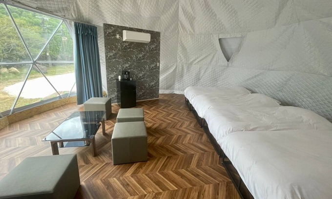 The property offers a luxurious accommodation experience in the midst of nature We offer various types of accommodation such as spacious tents with a diameter of 7m and cabins In addition each accommodation is individually equipped with comfortable beds air conditioning power supply bathroom and toilet etc to ensure a comfortable stay
