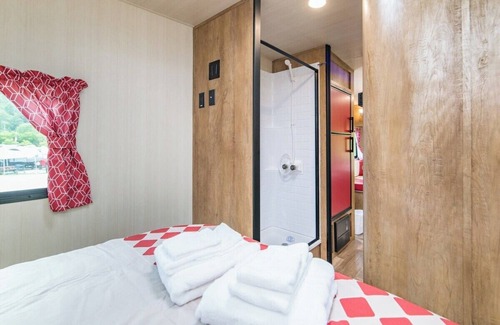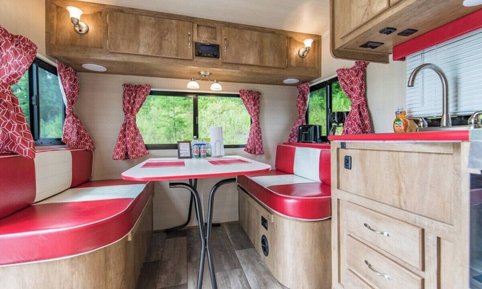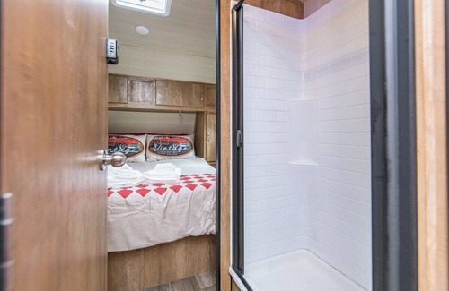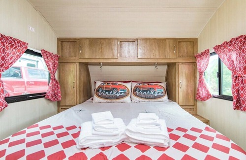 You'll always remember your time at this unique place to stay. Ole Red is a new retro style camper that is perfect for that quick trip to the RRG. Located at 4 Guys RV Park, guests will experience the glamping life in style! Guests will enjoy all the modern-day amenities in this camper along with, a private campsite, access to the community pool and bathhouse, and only a short commute to all the major attractions. Wood and basic needs are available for purchase at our onsite giftshop.