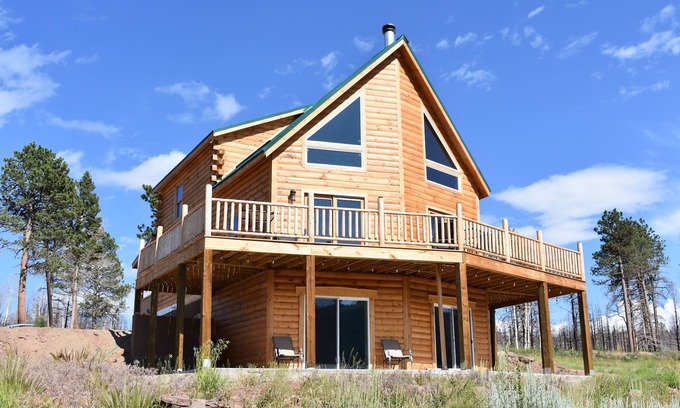 Built in 2021, this 2040 sq ft log cabin is nestled within the Sangre De Cristo Mountains in the Southeastern part of Colorado at an approximate 9100 feet elevation. It is located 95 miles north of Taos NM, 93 miles south of Pueblo CO, 42 miles east of Alamosa CO and 44 miles west of Walsenburg, CO.