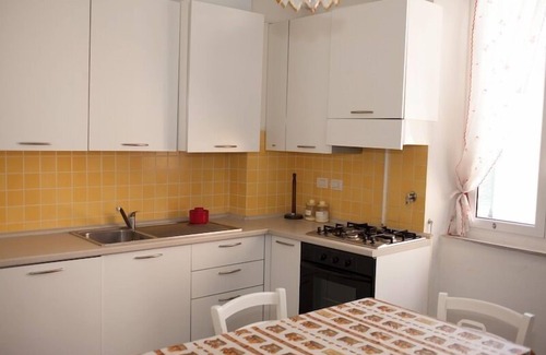 The apartment of 80 square meters. it consists of two bedrooms (one double with a sea view and one inside with two single beds), a living room overlooking the sea with sofa, TV and table for 6 people, a kitchen with fridge, washing machine, stove, electric oven and table for 4 people, a complete bathroom with shower and finally a hallway of the various rooms. Going up a flight of stairs or taking the elevator you access the solarium-terrace of about 80 square meters. equipped with an umbrella, two deck chairs and two tables with 4 chairs for eventual dinners. The terrace belongs exclusively to the apartment.