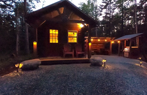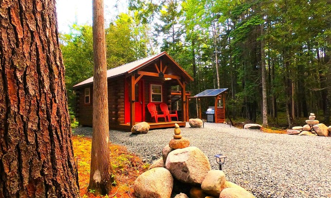 Welcome to a new tiny log cabin situated on 45 acres near the Amazing Maine coast. You will enjoy the privacy and easy access this property has to offer. You can have a secluded getaway and still be minutes from Acadia national park. You will experience a true off grid Maine camp with solar for power, rainwater collection for an outdoor shower, privy, and an outdoor kitchen with hot water sink, bbq grill and cooler. There is a country store less than a mile away with a deli, ice, drinks and gas.