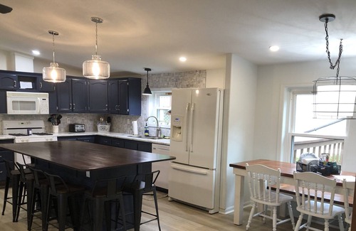 This newly remodeled house features an open-concept layout with three spacious bedrooms and two full bathrooms, accommodating everyone comfortably. Amenities such as kayaks and water mats are included, offering the perfect outdoor activities for your guests before or after your wedding events. The expansive deck serves as a picturesque spot for an intimate ceremony or a relaxed gathering, while the nature-themed decor adds a romantic touch to your wedding celebration. In addition, numerous yard games and a designated toy room will keep the younger guests entertained, ensuring a joyful atmosphere throughout your stay.