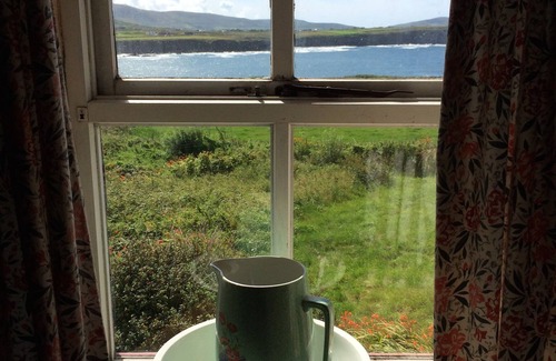 "Tigh na Meala" is the Irish for "House of honey" which was the original name of this two-storey cottage, stunningly situated on the Atlantic coast 10 min outside of Dingle town in the direction of Feothanach, Ballydavid and Brandon Creek. There are three bedrooms, one with a double bed( master), one with a bunk bed (two singles) and one with a double bed and single bunk (sleeps 7 total). The beautifully renovated farm house has a large kitchen and living room with a traditional fireplace including the original antique iron crane (see photo). There is a cosy bathroom downstairs with bath/shower and a toilet upstairs as well. The breathtaking view from the front of the house looks directly out on Smerwick Harbour to the south and to the West lie the Three Sisters and the Atlantic horizon. To the east is Ireland's second highest mountain, Mt. Brandon, climbed by Celtic/Christian pilgrims since the early Middle Ages. Also visible in the distance are the hills of Great Blasket Island. Total privacy, a cosy house facing the North Atlantic & proximity to Dingle's lively pub scene are what this house offers.